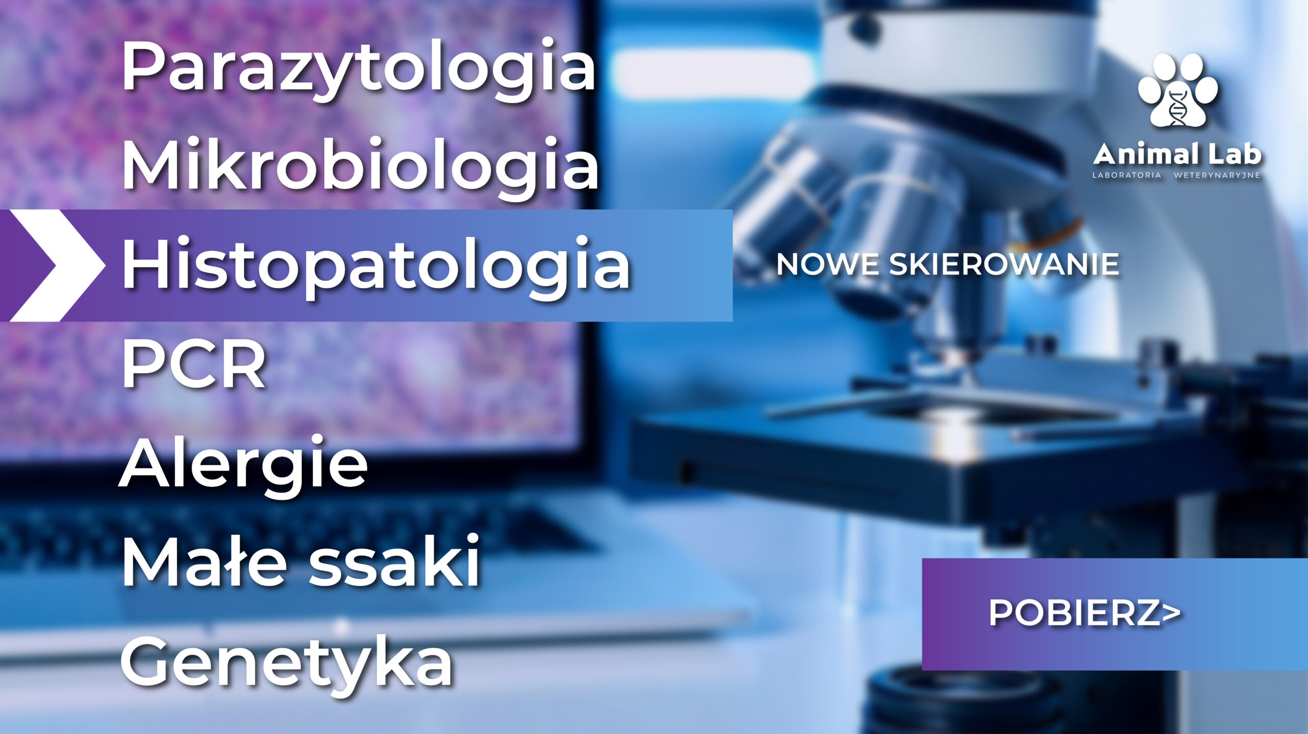 Nowe skierowanie – Histopatologia, cytologia / Aktualności, BADANIA LABORATORYJNE / By Animallab Miło nam poinformować, że nowe skierowanie: HISTOPATOLOGIA jest już dostępne do pobrania: HISTOPTAOLOGIA | NOWE SKIEROWANIE Pobierz inne skierowania: KLIKNIJ OFERTA BADAŃ